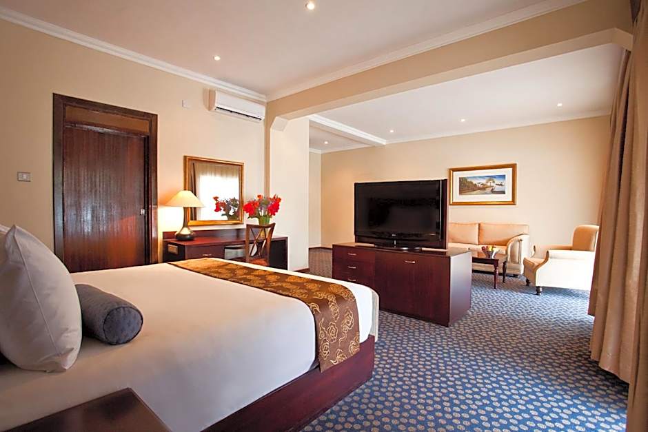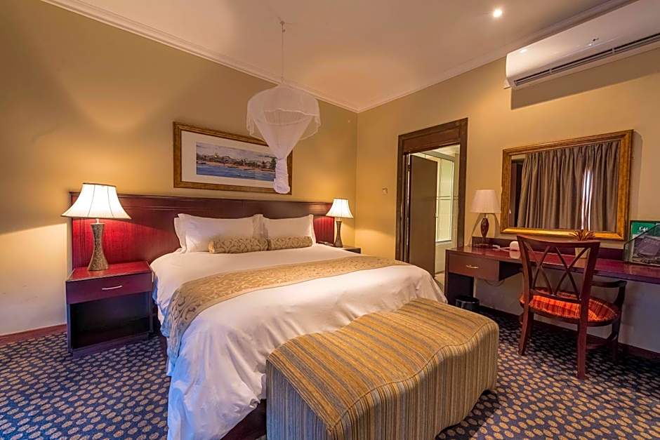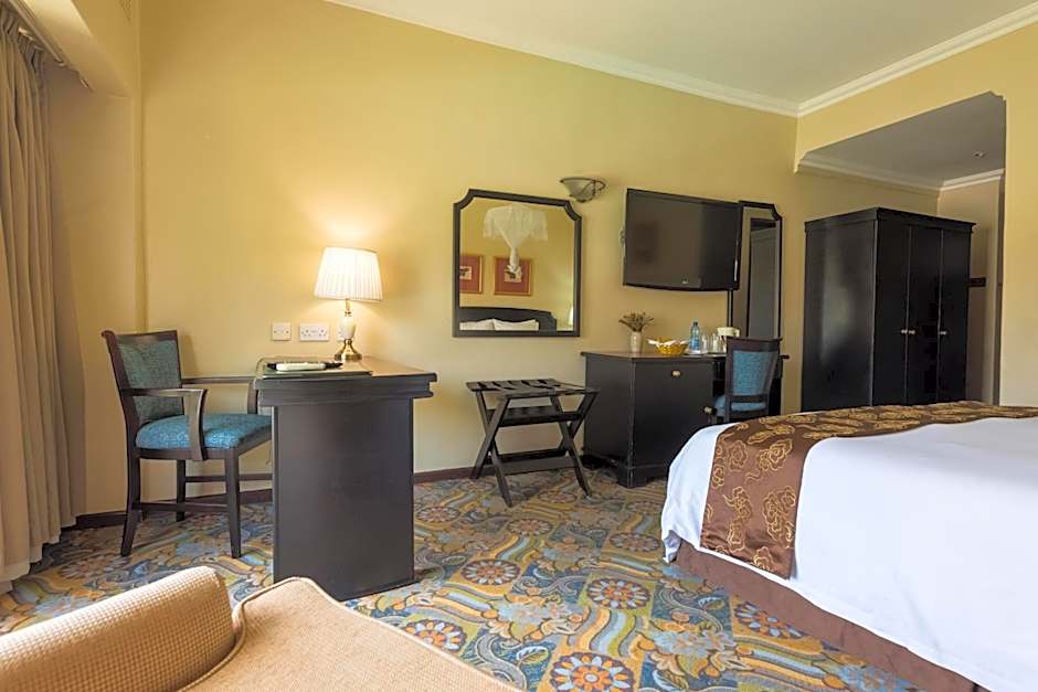 Two on-site dining options add flavor to the stay. Vincents serves African, American, and British dishes in a family-friendly, modern setting, while Mimosa blends traditional and modern vibes with African, American, British, and Local flavors. After a day of exploring, the outdoor pool invites a refreshing dip, and the terrace with garden views provides a perfect spot to unwind in the sunshine.